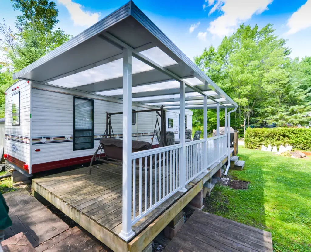 • Easy Installation: The roof system offers simple, labor-saving installation with a one-piece gutter system and customizable aluminum finishes in White, Driftwood, and Bronze.