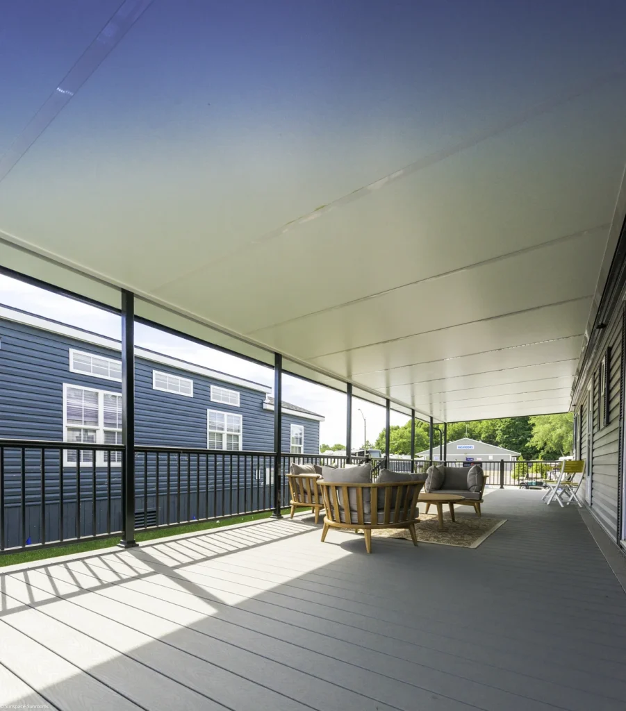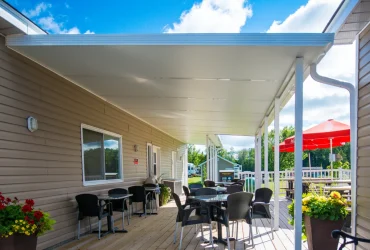 Whether you are considering installing a roof over your current deck or hoping to create a protected carport ñ at Sunspace, we have you covered! All Sunspace roof systems come in thicknesses of 3" R-12, 4" R-16 and 6" R-24. How do you choose thickness? We look at your roof projection, snow load and R Value. All roof systems are durable with high density foam core with aluminum skins laminated on both sides or have an OSB exterior to accommodate standard shingles. Every roof system has an internal water trough system to channel away moisture and comes standard with worry free heavy duty extruded aluminum gutters and fascia.