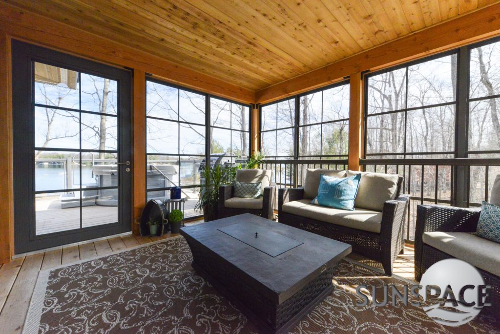 The Sunspace Vertical 4-Track Entry Door is used in both sunroom and porch enclosure applications. Built on the same premise as the WeatherMaster™© Window, the Entry Door is custom built in terms of customizing the window as well as the knee wall height, the Sunspace entry door will unify the look of your new sunroom or porch enclosure adding to its beauty and functionality.